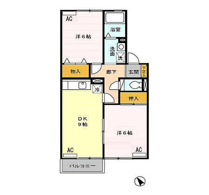 ラ・ベルフォンテーヌ A 202 2DK/2階