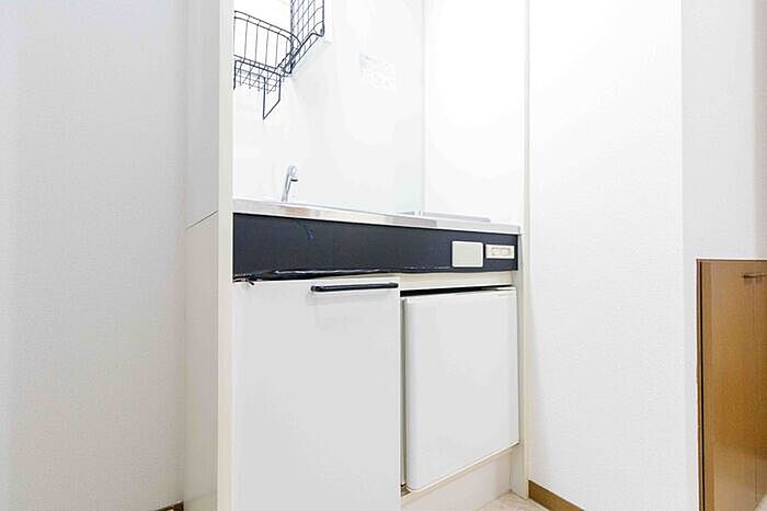こちらの物件は洗面所が独立しています。火が出ない電気コンロをご利用いただけるアパートです。