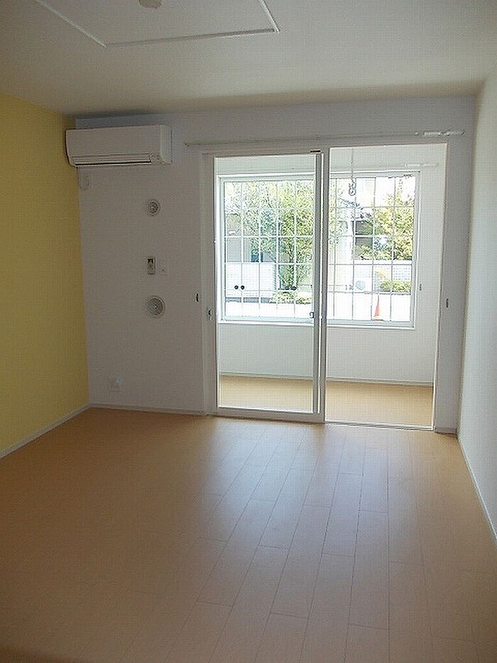 小松市島町のお部屋です。エアコン2台・追炊機能と浴室乾燥機のあるお風呂・キッチンは対面式・サンルーム