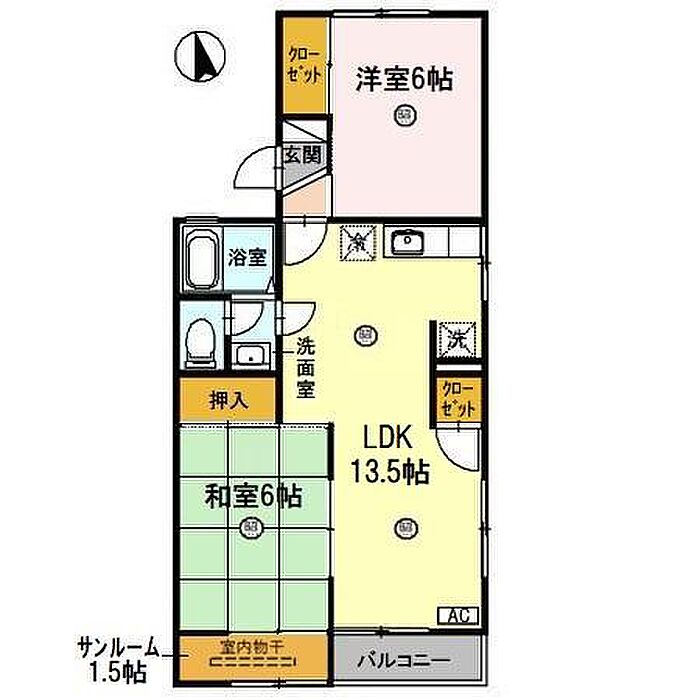 サニーコート聖 A棟 201 2LDK/2階