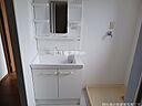 収納スペースが大きいため、生活感のでやすい小物類もすっきりと隠して収納できる洗面化粧台があります。