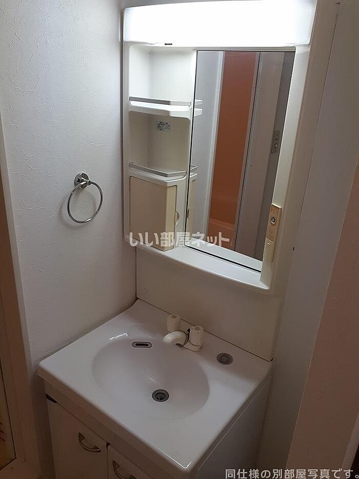 身支度に必要となる様々なアイテムを収納できるスペースがある洗面化粧台が付いています。