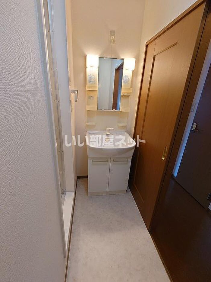 忙しい朝でも鏡を見ながらサッと身支度を整えることができる独立洗面台があります。
