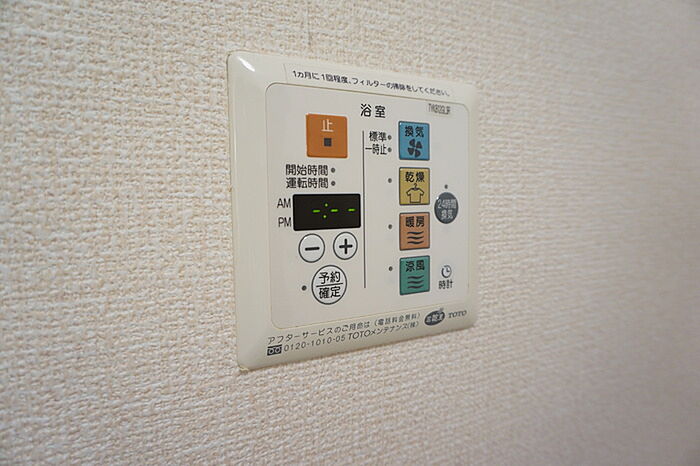 浴室乾燥機が付いているので、雨の日で濡れた上着や傘もすぐに乾燥できます。
