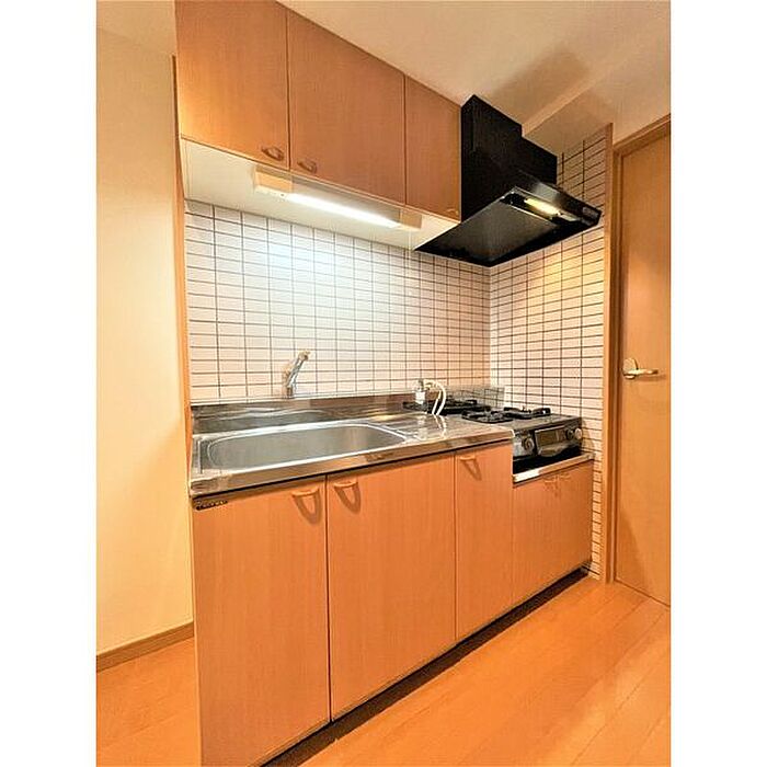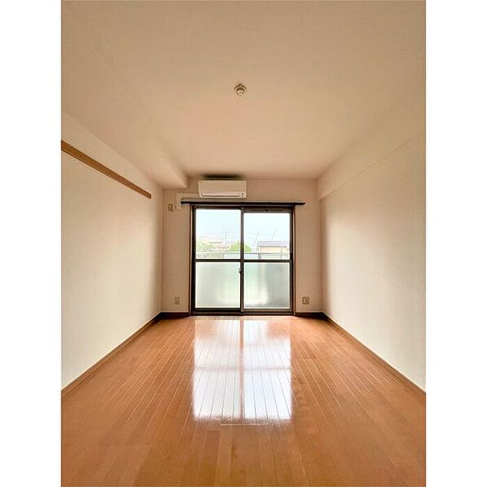 このエアコン付き物件なら空調管理は安心です。お部屋とキッチンに仕切りがある、1Kの物件です。