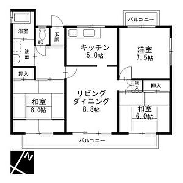 中部東山荘北棟 302 3LDK/2階