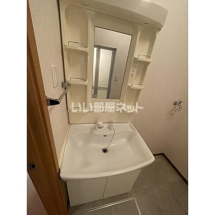 独立洗面台はコンセントや照明、大きな鏡などがついているのでスムーズに身支度を整えられます。