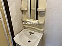 化粧品や洗面道具といった小物をまとめて収納できる洗面化粧台が付いております。