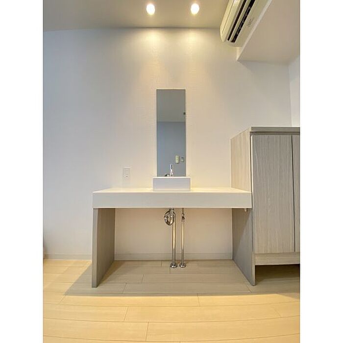 独立洗面台が付いているので、歯ブラシやドライヤーなどもまとめてスッキリ収納できます。