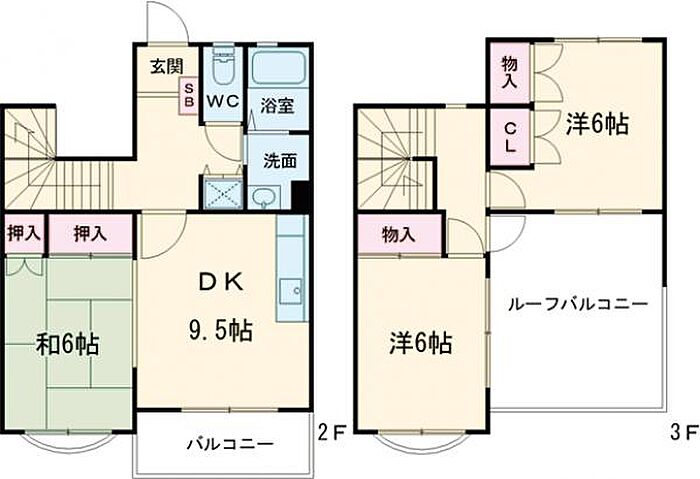 アグロス3号棟 B2 3DK/2階