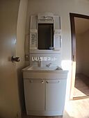化粧品や洗面道具といった小物をまとめて収納できる独立洗面台が付いております。