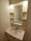 忙しい朝でも鏡を見ながらサッと身支度を整えられる洗面化粧台があります。駐輪場付きの物件です。