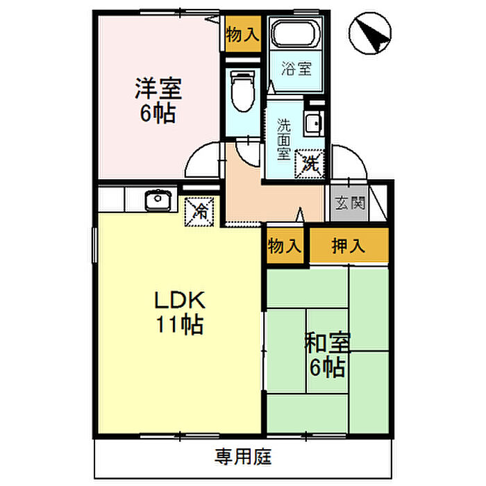 室内設備は専用庭・バストイレ別などが揃っているので、快適に過ごしやすいお部屋になります。