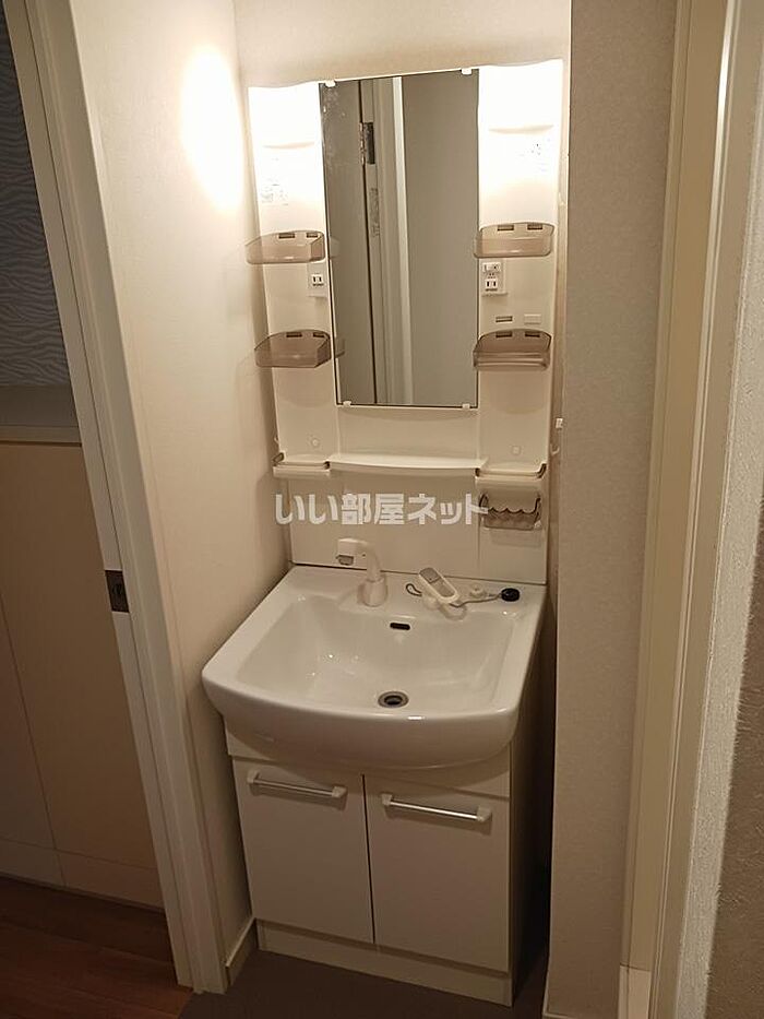 髪のセットがやりやすい洗面化粧台が設置されております。ぜひご覧いただきたい賃貸物件です。