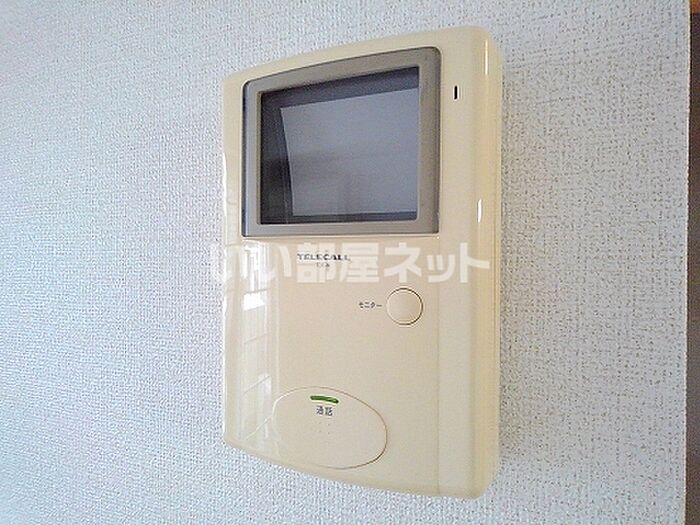 来客時にはTVインターホンで訪問者の顔を確認することができます。エアコンが設置されている物件です。