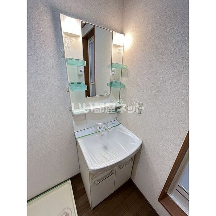 独立洗面台が付いているので、歯ブラシやドライヤーなどもまとめてスッキリ収納できます。