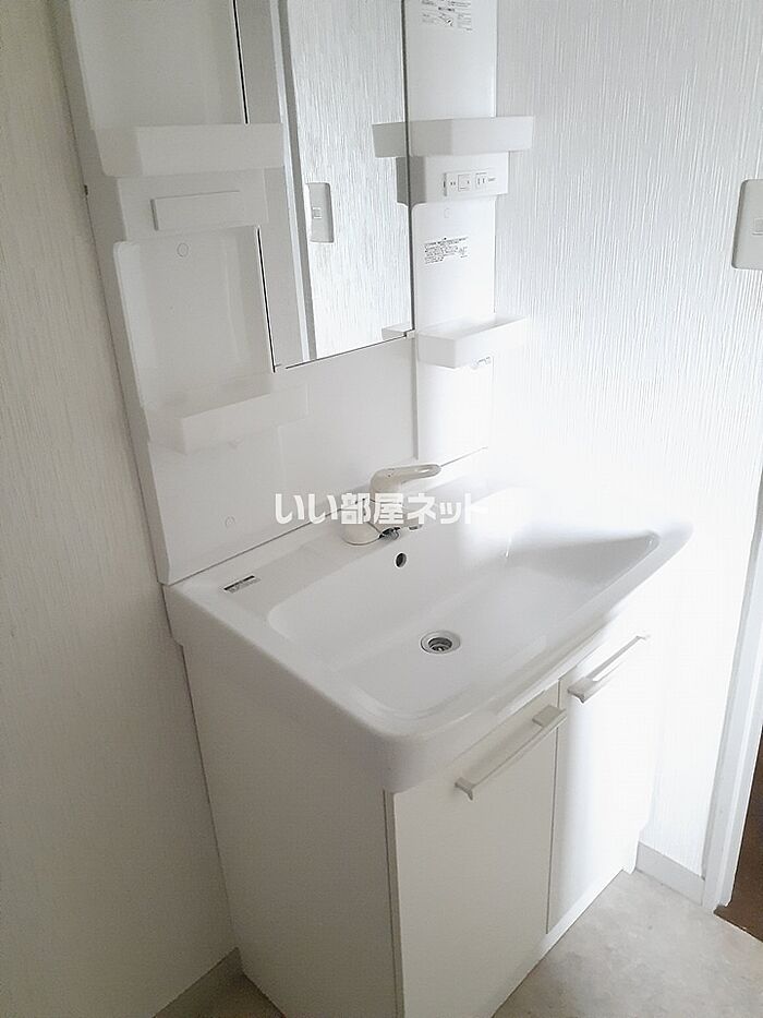 身支度に必要となる様々なアイテムを収納可能なスペースがある独立洗面台が付いています。