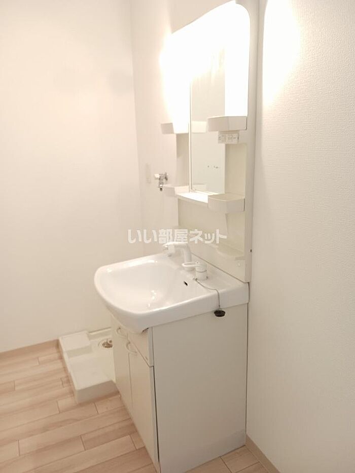 独立洗面台を備えているので、歯ブラシやドライヤーなどもまとめてスッキリ収納できます。