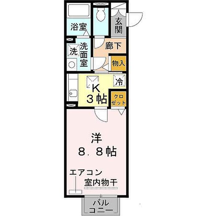 クレアコート A棟 105 1K/1階