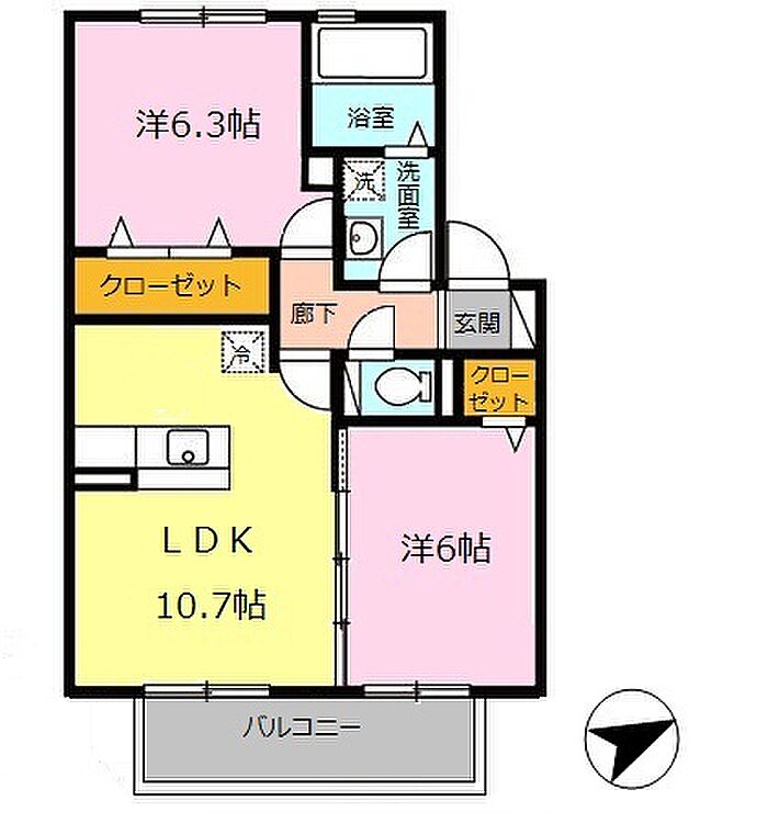 ロイヤルガーデン F棟 202 2LDK/2階