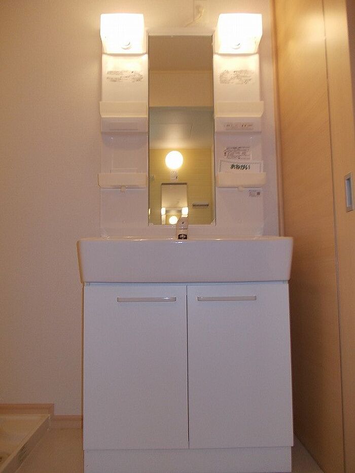 身支度に必要となる様々なアイテムを収納可能なスペースがある独立洗面台を設置しています。