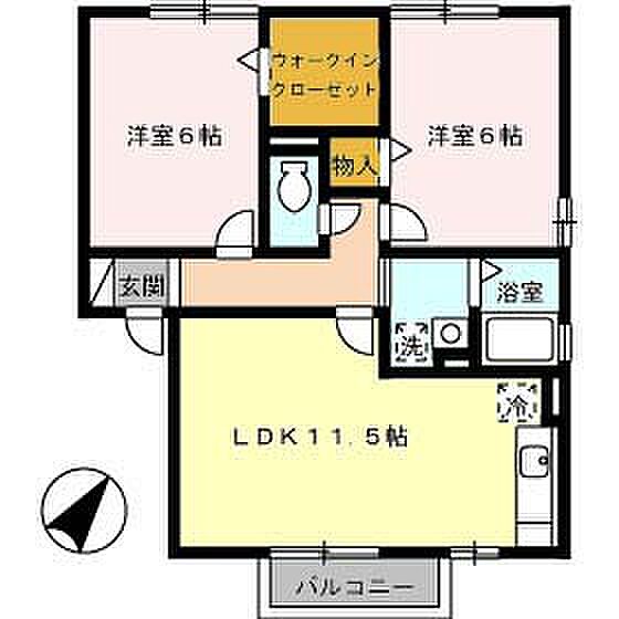 シャンメール B棟 B202 2LDK/2階