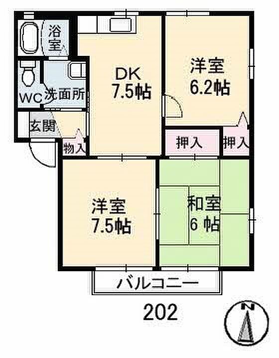 セントラルヴィレッジ B棟 202 3DK/2階