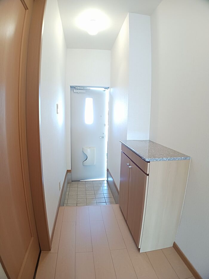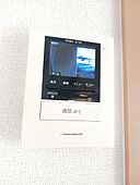 インターホン越しに来訪者を確認できるので、トラブルを回避しやすくなります。照明付きの物件です。