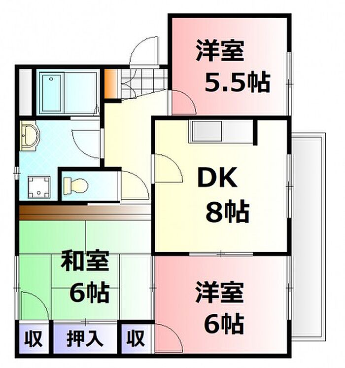 ディアス川内B棟 202 3DK/2階