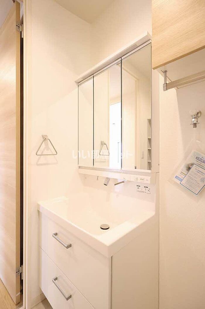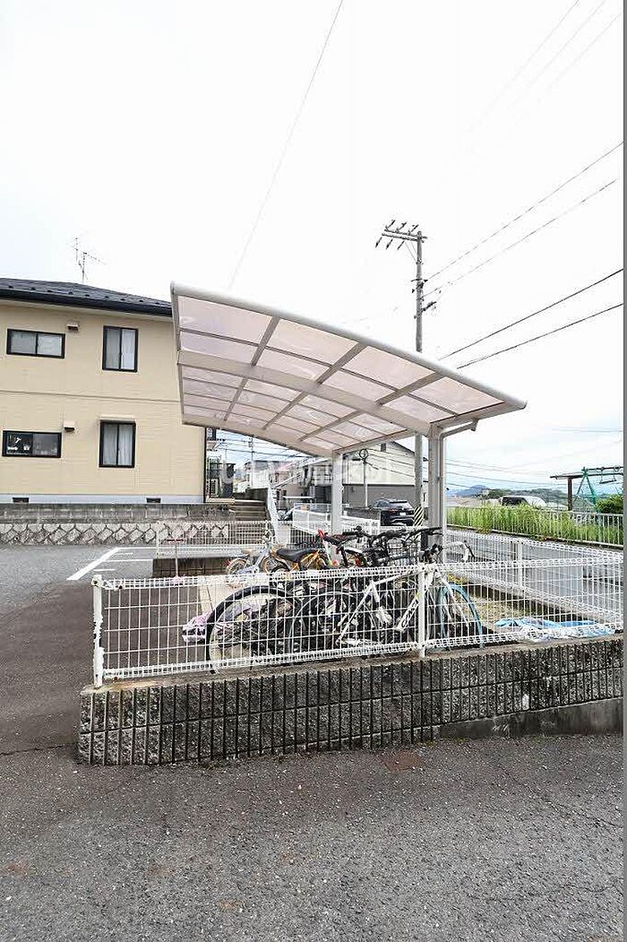 身支度のしやすい洗面化粧台付きの物件です。駐輪場付きのアパートです。