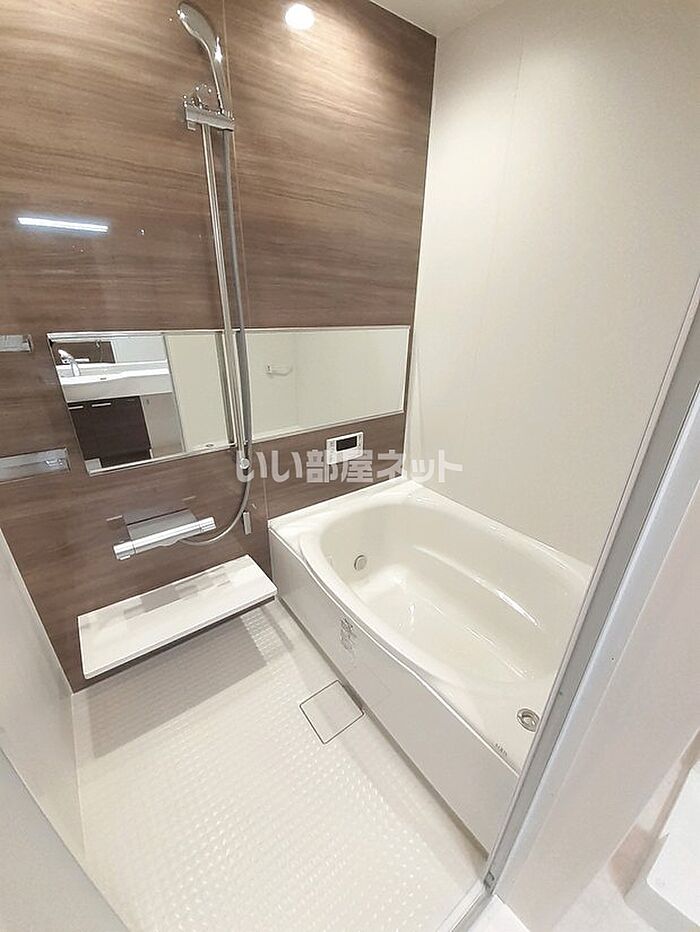 来訪者の顔が見えるTVインターホン付き。こちらの物件は追い焚き機能の付いた浴室になります。