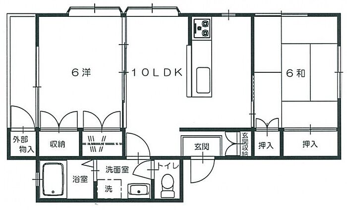 対面システムキッチン 敷地内P1台付 2台目敷地内駐車場7、000円(敷金1ヵ月)