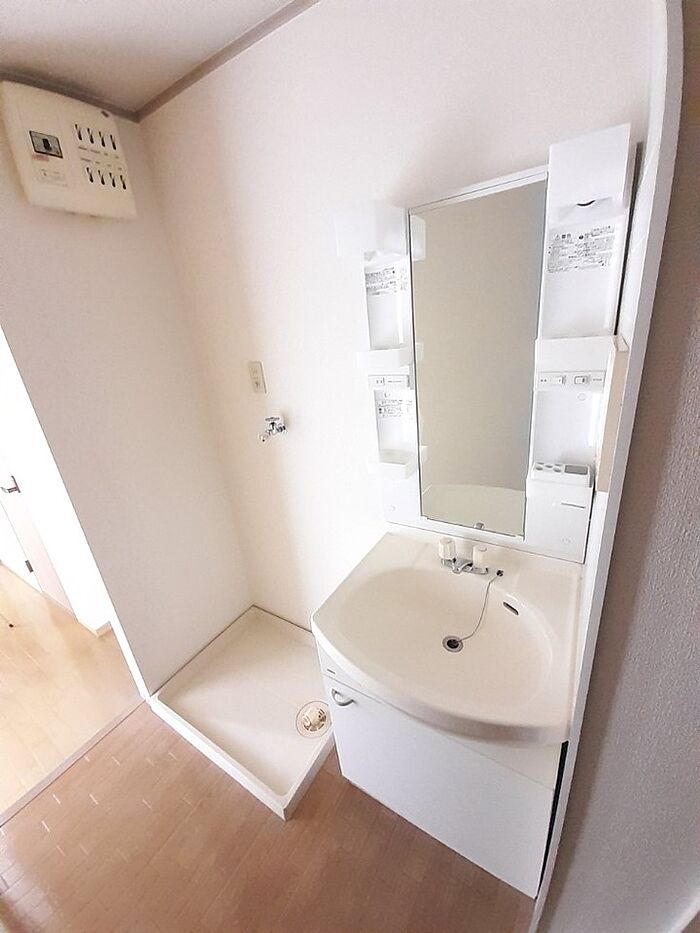 洗面化粧台を採用しているので、歯ブラシやドライヤーなどをまとめてスッキリ収納できます。