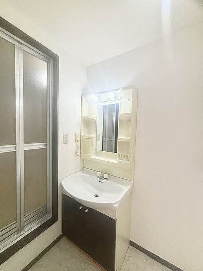 身支度に必要となる様々なアイテムを収納可能なスペースがある独立洗面台を設置しています。