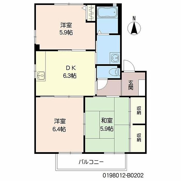 メゾン リヴィエール B棟 B0202 3DK/2階