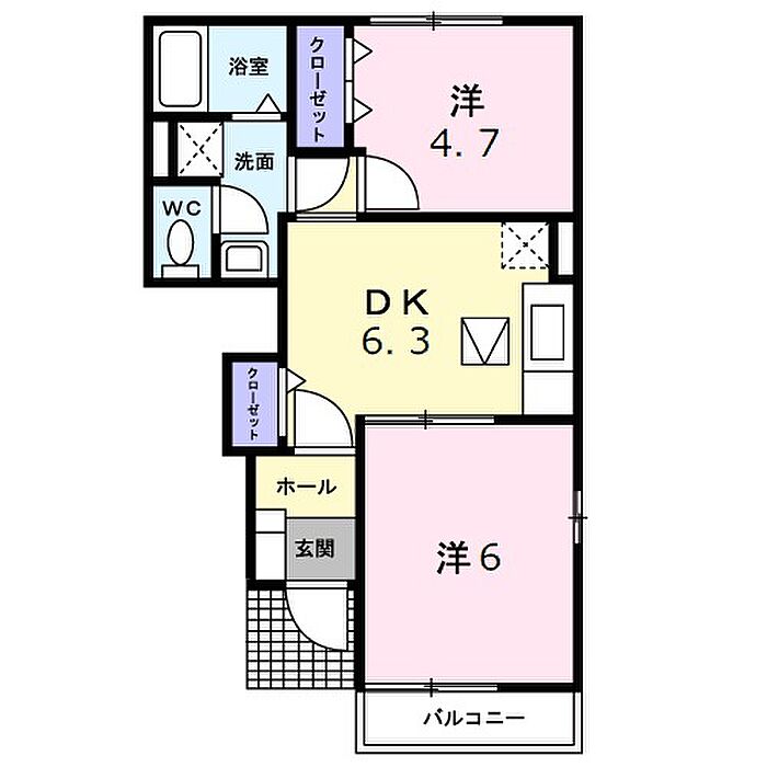 スリーワンスリーヒルズD 103 2DK/1階