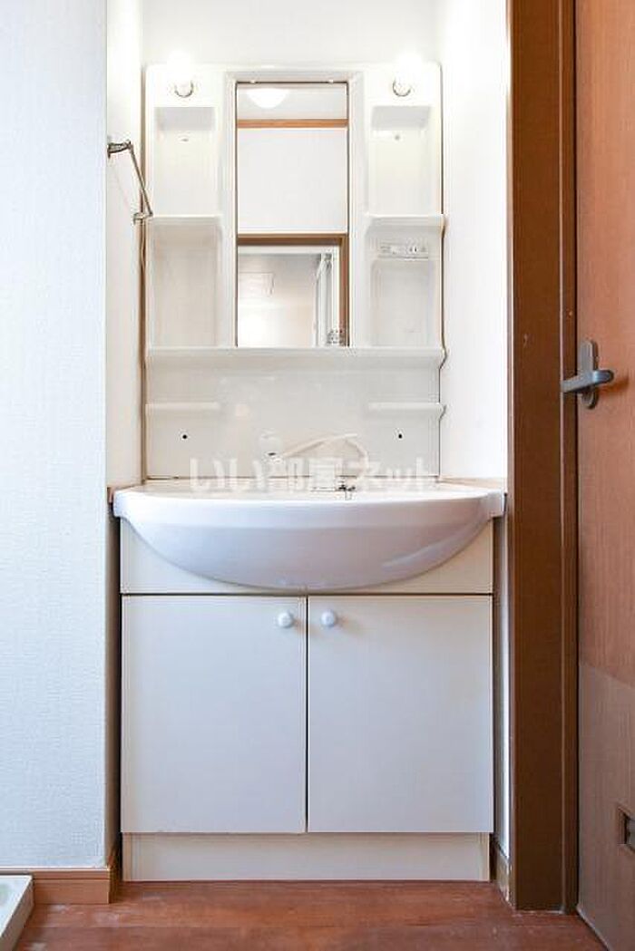 化粧品やスタイリング剤などをまとめて出して、サッと身支度を整えられる独立洗面台が付いております。