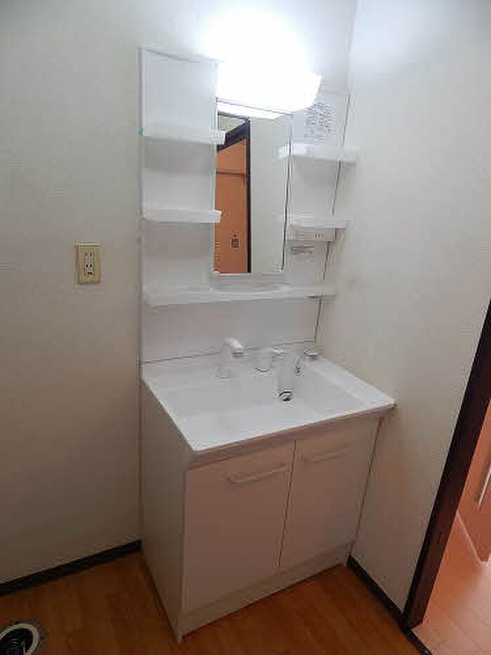 化粧品や洗面道具といった小物もスッキリまとめて収納できる独立洗面台が付いております。