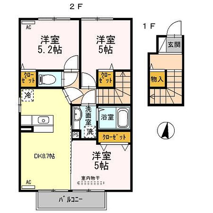 エアコン2台付き物件です♪2DKの間取りですが、リビングと洋室の間のスクリーンを収納すれば広めの1LDKのようにも使えます☆