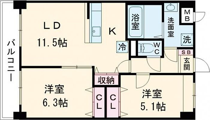 洋室 6.3帖