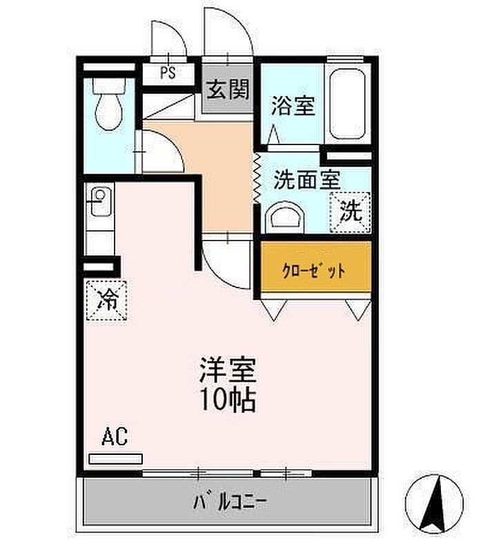 ベイサージュ富の原 B棟 203 ワンルーム/2階