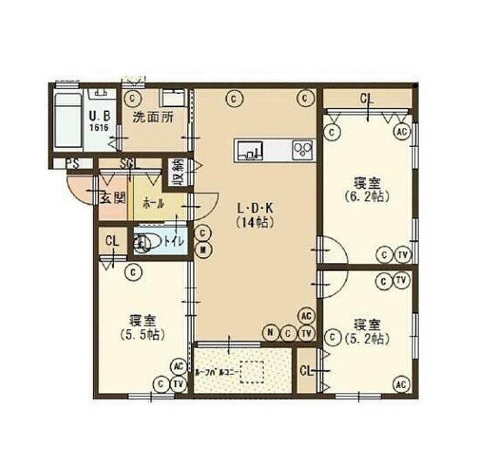 リビングダイニングキッチン 14帖)