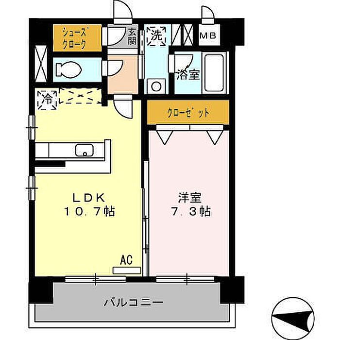 大分市中心部の千代町エリア1LDK共用部オートロック・宅配ボックス有ります対面キッチン仕様・エアコン・追焚機能・温水洗浄暖房便座付きインターネット無料(D.U-NET。回線工事後使用可)