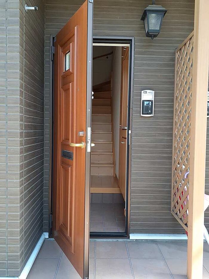 来客時にはTVインターホンで訪問者の顔を確認することがきるので安心感があります。駐輪場付き物件です。