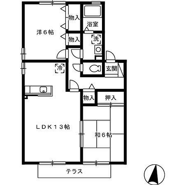 サンロイヤル B棟 102 2LDK/1階