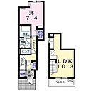 1LDK。1、2階メゾネット。追焚機能、エアコン2台、都市ガス、TVドアホン、浴室乾燥機付き。