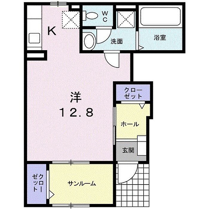 オール電化仕様です。キッチンはIH付き、ゆとりあるサンルームにクローゼット付きの1Rです!