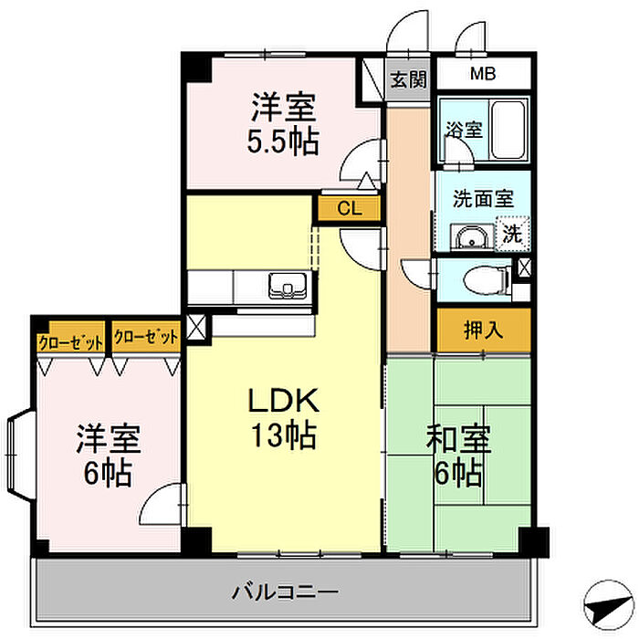レジデンス若松 201 3LDK/2階