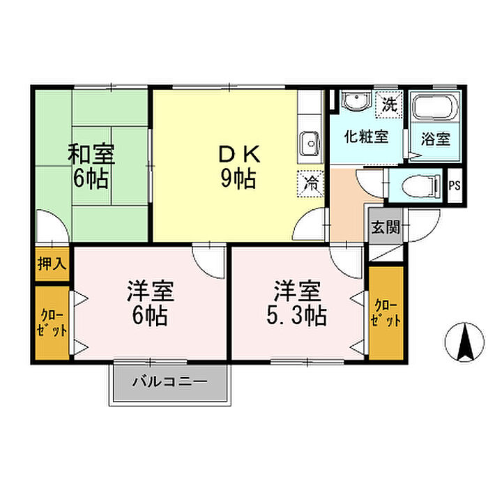 ルミエール二階堂 201 3DK/2階