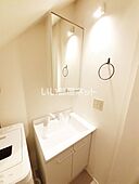 化粧品や洗面道具といった小物もスッキリまとめて収納できる独立洗面台があります。